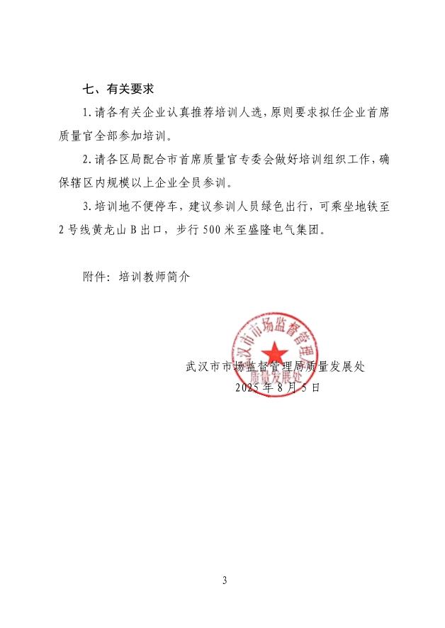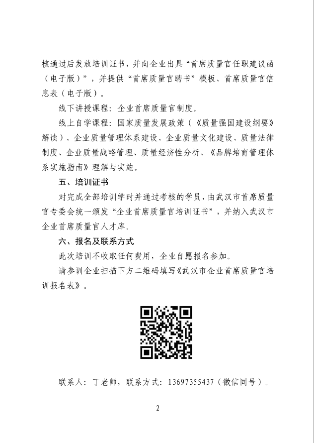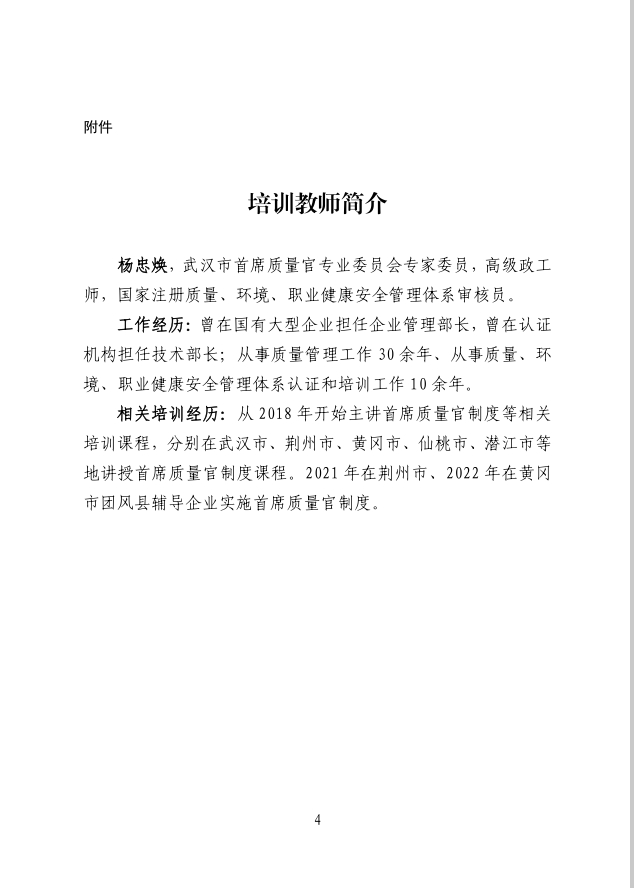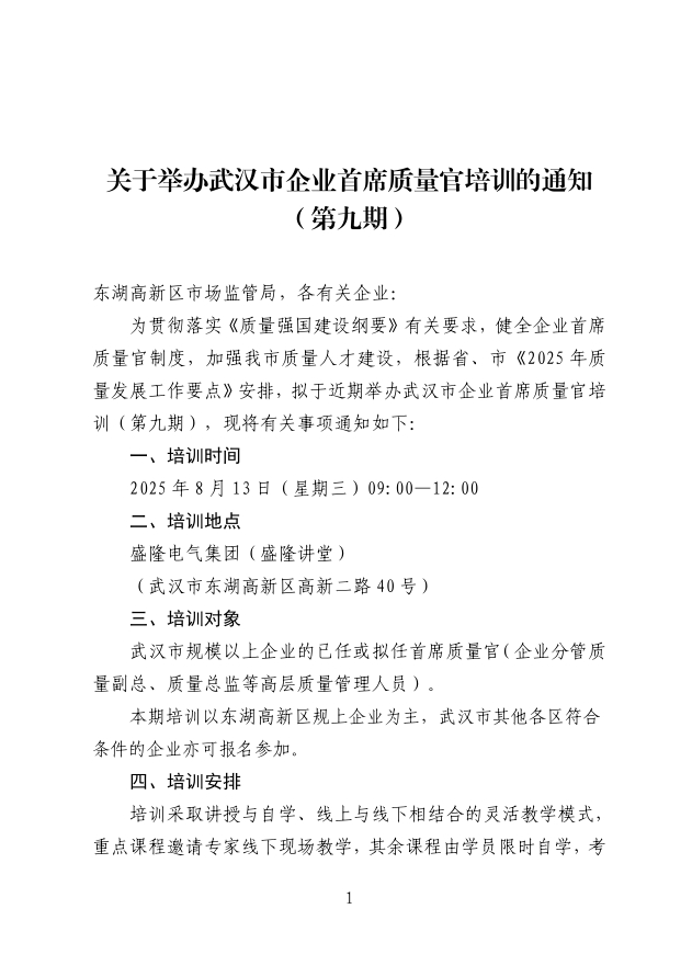 關(guān)于舉辦武漢市企業(yè)首席質(zhì)量官培訓(xùn)的通知(第九期)